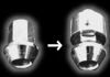 1-B 圧入工具がない場合 ホイールボルトに破損してのいいホイールナット(ボルトと同じサイズのもの)をめじ部が出ない程度締込みアドロックキャップ 、ホイールボルトの順番でセットします。 |